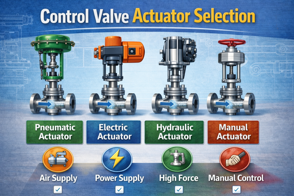 Master Control Valve Sizing for industrial applications. CONTROL VALVE SIZNG PROCEDUREControl valve selection is a crucial step after sizing. Proper selection ensures the valve is neither undersized nor oversized, delivering optimal performance, reliability, and efficiency. Always follow the client’s control valve specifications during the selection process. vALVE SELECTIONControl Valve Actuator Sizing and Selection: A systematic approach to determining actuator thrust, torque requirements, and mechanical compatibility for safe and efficient operation. ACTUATOR SELECTION AND SIZING